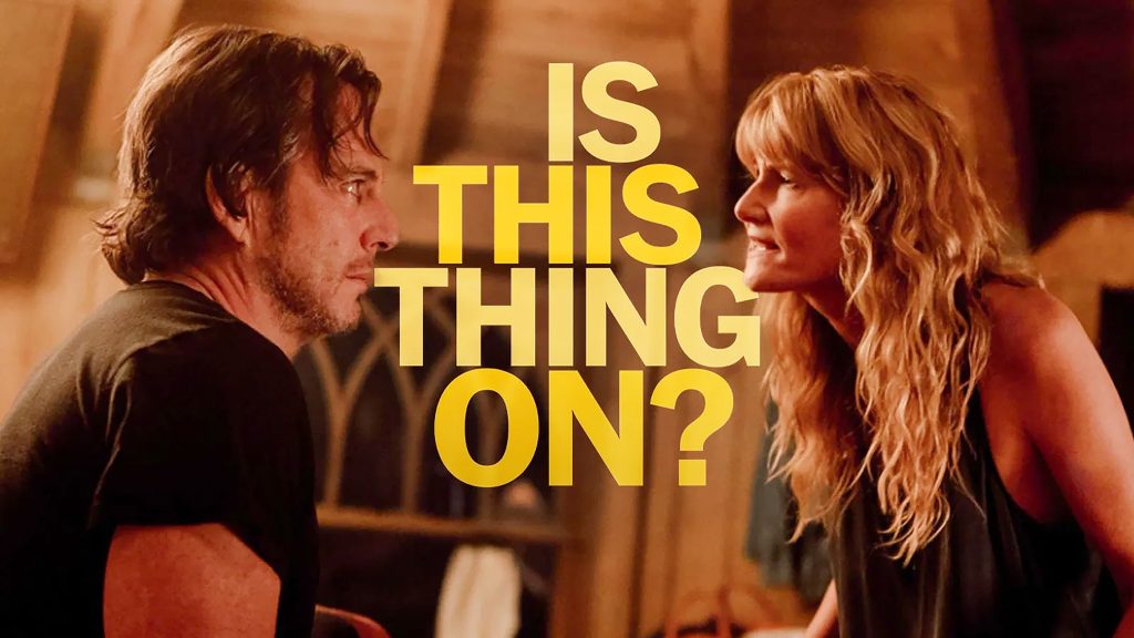 Is This Thing On? is a comedy-drama film directed by Bradley Cooper. The life of British comedian John Bishop loosely inspires it. After many years together, Alex and Tess have reached an amicable end to their marriage, beginning the awkward stage of figuring out how to live separately while raising two boys and maintaining their friendships. Alex discovers a new hobby and, in the process, learns more about himself and his relationship. Stars Bradley Cooper, Laura Dern, Andra Day, Amy Sedaris, Sean Hayes, Christine Ebersole, and Ciarán Hinds.