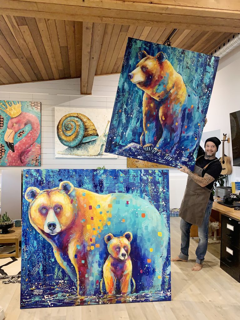 Now based in scenic Coldstream, BC, Jordan continues to push boundaries, explore new techniques, and chase his next masterpiece—still messy, still curious, and still laughing at the fact that it all started with dollar store paints and a little girl who believed in him.