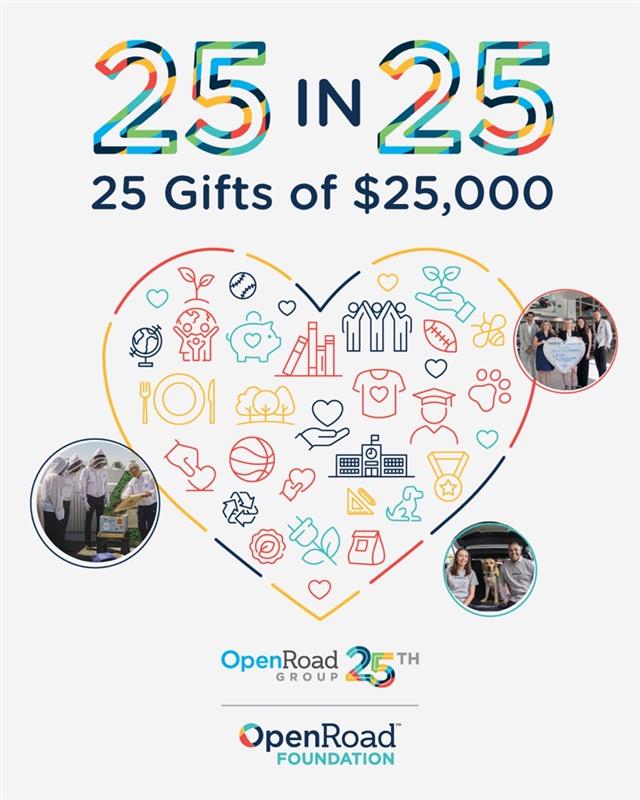 Richmond, BC, August 13, 2025 – OpenRoad Foundation, the registered philanthropic arm of OpenRoad Group, is proud to officially announce the 25 recipients of its inaugural 25 in 25 grant initiative, launched earlier this year in celebration of OpenRoad Group’s 25th anniversary. With $625,000 in total funding – 25 grants of $25,000 each – the campaign supports registered non-profit and charitable organizations across Metro Vancouver and Greater Toronto whose work aligns with one or more of OpenRoad Foundation’s three key pillars: CommunityEducation, and Environment.